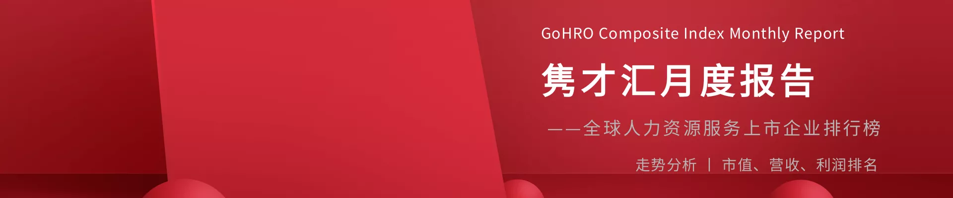 隽才汇根据全球人力资源服务企业的上市、退市和并购等变化,推出“隽才汇综合指数”,以更直观感受行业走势。我们从公司的市值、营收和利润三个维度进行排名,方便观察上市企业的市场认可度、业务规模和盈利能力。
